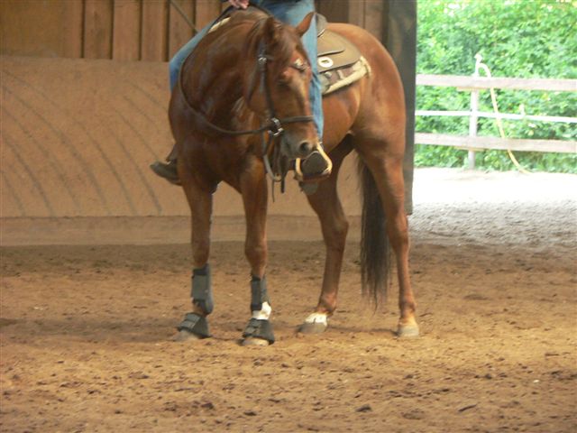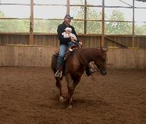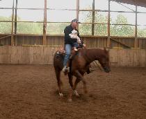 Hier meine Co-trainerin Violette Lacey. Sie bekommt gerade Erfahrung mit fortgeschrittenen Pferden, und verbringt gleichzeitig Quailityzeit mit ihrem Papa. Jeder reining Trainer weiss, dass das Allererste, was man uberwinden muss, ist den Tendenz bei Spins schwindlig zu werden.